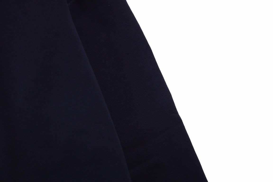 Navy blue hoodie with tan "7" print on the chest. Comfortable and cozy fit. Features a front kangaroo pocket and drawstring hood. Ideal for casual and stylish wear.