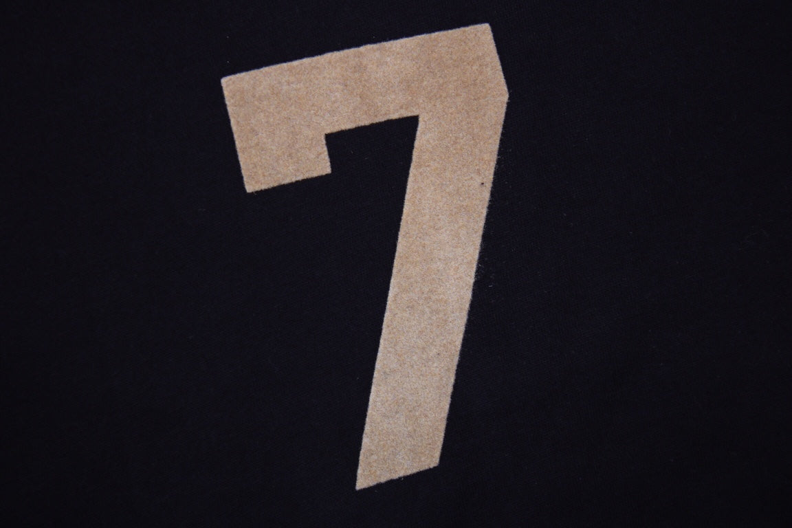 Black hoodie with tan "7" print on the chest. Comfortable and cozy fit. Features a front kangaroo pocket and drawstring hood. Ideal for casual and stylish wear.